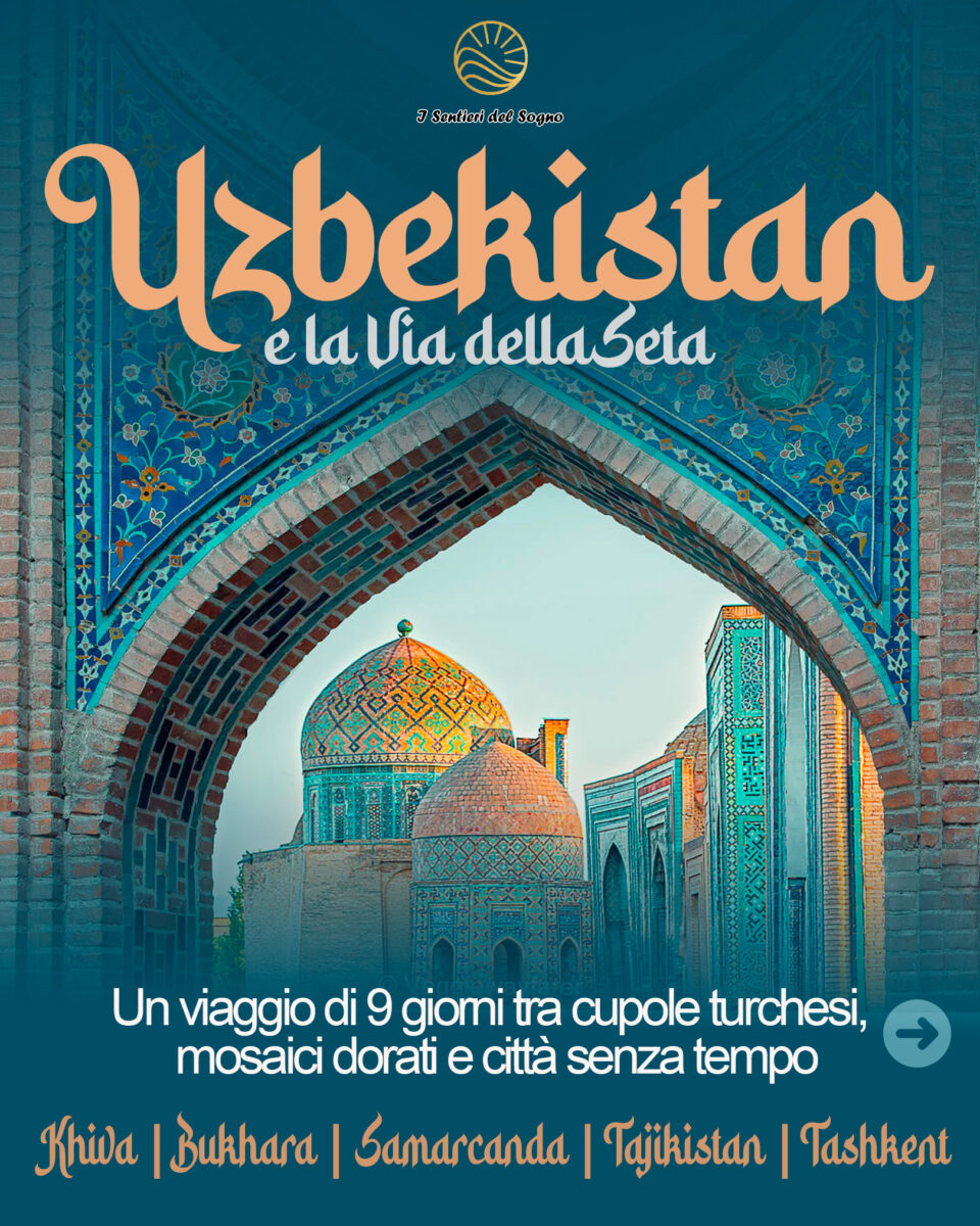 Un viaggio che ripercorre la leggendaria Via della Seta, toccando le tappe più suggestive: dallo splendore di Khiva, museo a cielo aperto, alle tortuose strade di Bukhara, con le sue antiche moschee e madrasse, fino alla leggendaria Samarcanda, città di poeti e viaggiatori, tra madrasse decorate da maioliche blu e dorate, e monumenti storici che raccontano secoli di storia. Un’escursione al Tajikistan tra montagne, laghi e siti archeologici completa il viaggio, terminando con la capitale Tashkent, moderna e ricca di architettura post-sovietica.
