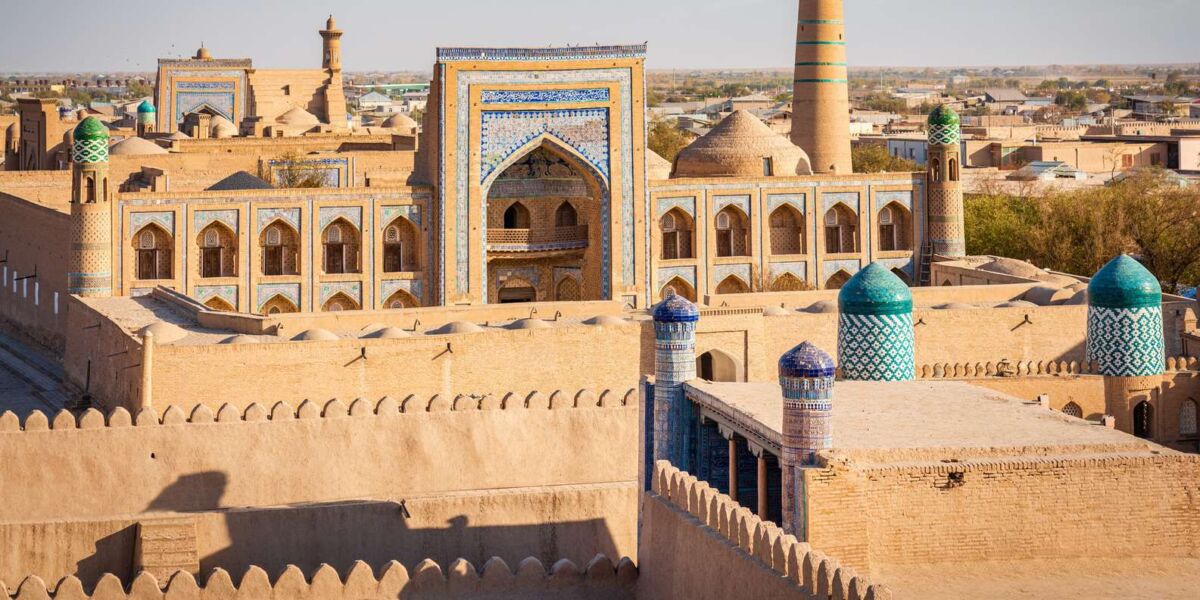 Partenza con volo di linea per Urgench durante la notte. Arrivo in mattinata, trasferimento a Khiva e sistemazione in hotel. Prima esplorazione della città-museo, tra stradine antiche, madrase e moschee.